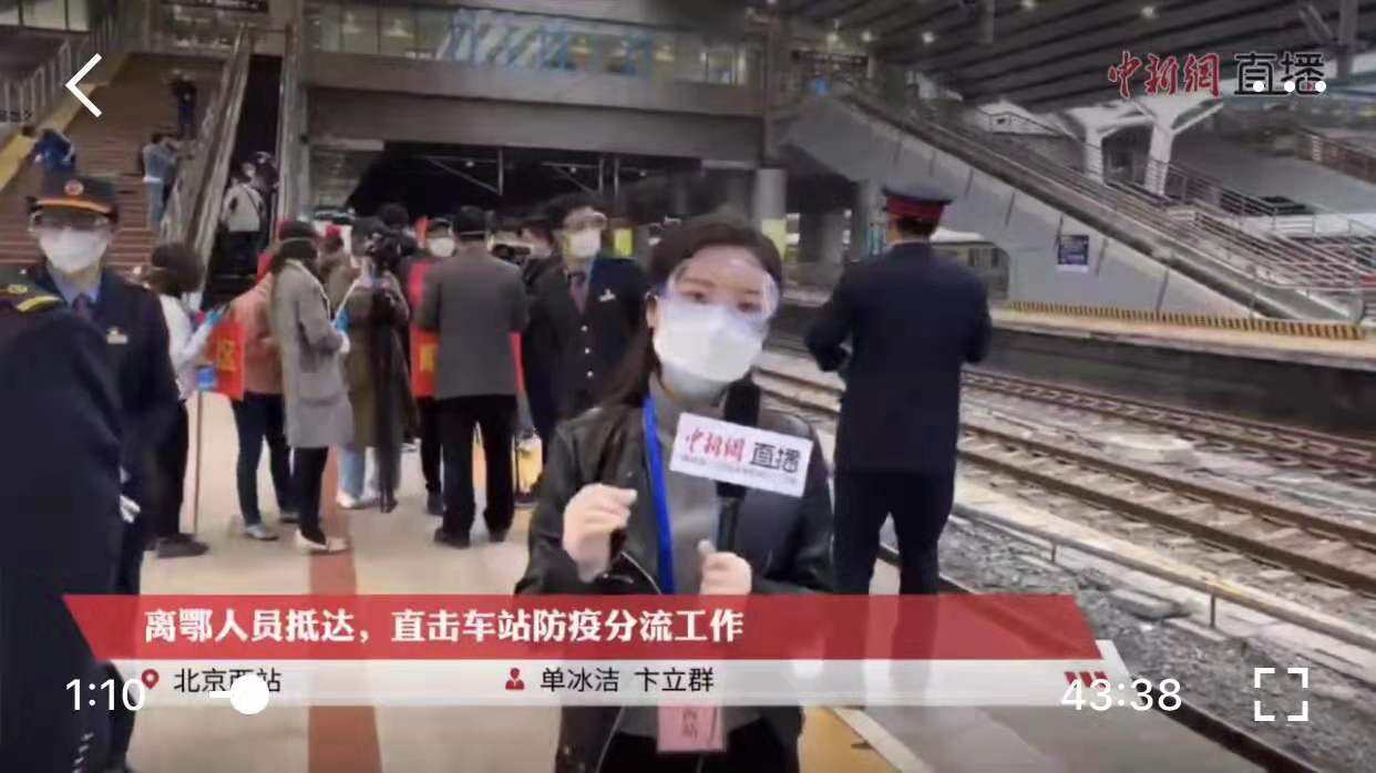 (疫情期间单冰洁在北京西站进行直播报道)