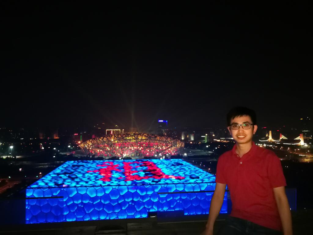 (尹星云站在周边制高点俯拍鸟巢、水立方)